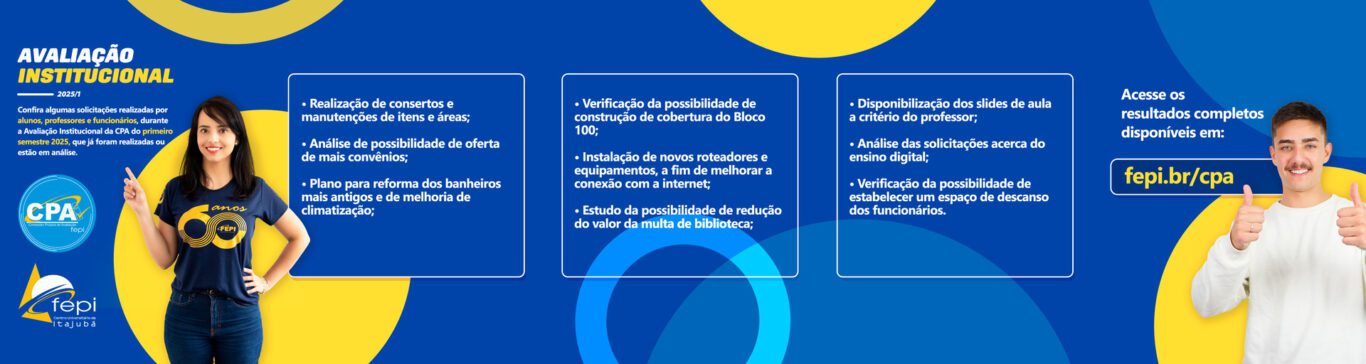 As avaliações ocorrem conforme calendário divulgado previamente no website, nos quadros de avisos dos corredores e das salas de aula da FEPI.