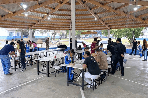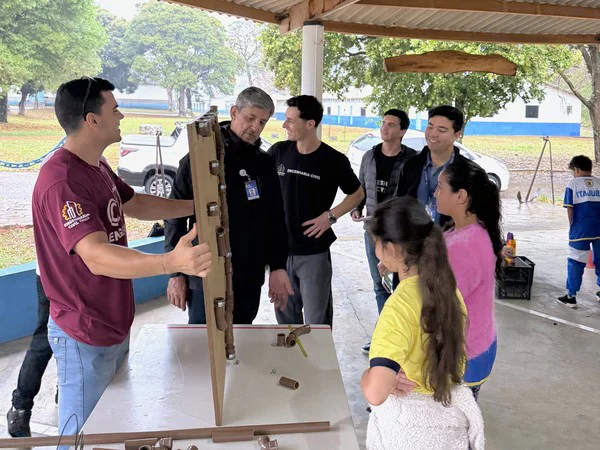 Durante a ação, os acadêmicos de Engenharia Civil interagiram com os alunos, conduzindo diversas atividades lúdicas relacionadas aos conceitos de Engenharia. O objetivo era fomentar o interesse pela área das Exatas, além de exercitar valores como disciplina, cooperação e responsabilidade social.