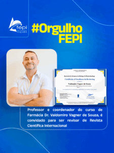 O professor Dr. Valdomiro Vagner de Souza, coordenador do curso de Farmácia do Centro Universitário de Itajubá – FEPI, foi convidado para integrar o corpo de revisores científicos da Journal of Advances in Biology & Biotechnology, periódico internacional que publica artigos nas áreas de Biologia Celular e Biotecnologia.